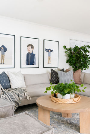 A complete reimagining of an outdated basement to a stylish and comfortable living area for a young family.